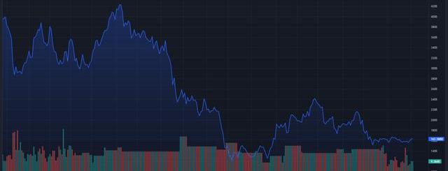 到去年這個日期,山寨幣以3,848美元的交易價格開盤,幾乎是其當前價值的三倍。