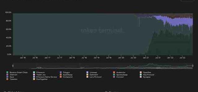 根據令牌終端12月3日的推文,Polygon網絡上的dApp活動在過去幾個月持續增長。在過去幾個月中,Polygon在每日活躍用戶方面的市場份額有所增長,并超越了競爭對手。這種活動激增可能有助于MATIC的低迷價格。