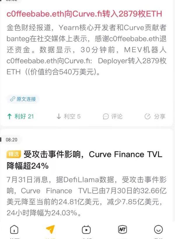 交易所、礦池的妖鵝子都出差不多,這時候黑天鵝果然是來自黑客。據說技術面顯示正變盤,尤其ETH,CurveFinance穩定幣池遭黑客攻擊,機構資金被盜,后續不知道會不會有連鎖反應,能不能找回來。