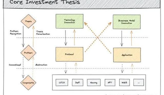 最后我們來聊一聊CipholioVentures投資理念的形成方式。我們認為所有原生的加密創新只有兩種模式:技術驅動與商業模式驅動。分別對應協議和應用層的創新。而根據這個邏輯又可以在不同的賽道中梳理出產業結構競爭格局,這個從理念到模式到組件至上而下的過程是做行業研究的框架,也是我們上文針對不同賽道將進行分析的核心框架。但投資恰好是個相反的過程,即需要根據未來可能出現的基礎組件抽象出分別對應的模式是什么,再向上推測看是什么技術創新或者商業模式創新能夠帶來這樣的改變,最終形成核心投資理念指導未來的投資。
