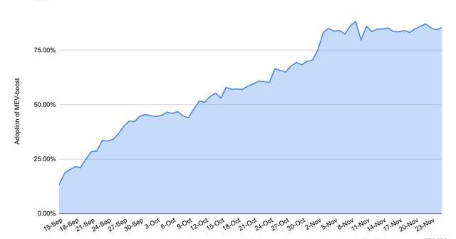 MEV-Boost的采用率變化,來源:https://dune.com/queries/1279670/2192739