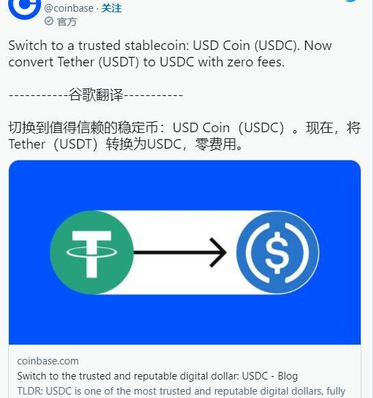 根據12月8日發布的一篇博客文章,Coinbase鼓勵其用戶將持有的Tether(USDT)換成美元硬幣(USDC)。