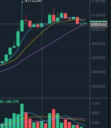 BTC短線上漲,突破60000美元關口,截止4月10日13:49最高報61722美元,日內漲幅達到3.02%以上,BTC突破10W美元只是時間問題。