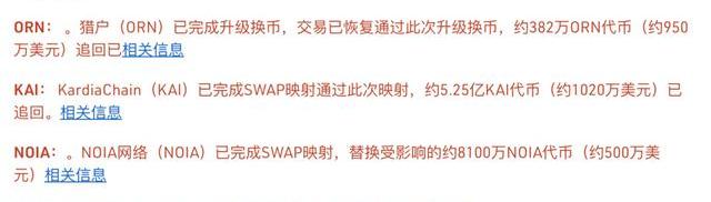 結合庫幣官網實時披露的信息,以上圖片中的數據更加有說服力。我們可以看到,庫幣團隊已經追回了2200萬個USDT,382萬個ORN,2.25億個KAI,8100萬個NOIA等,更多的資產也將在其他項目方的幫助下被追回。如SNTR,VIDT、COV等多個項目方也表示將通過升級或重新部署合約等方式來支持庫幣,所以庫幣在本次事件的損失會在其可承受的范圍內。