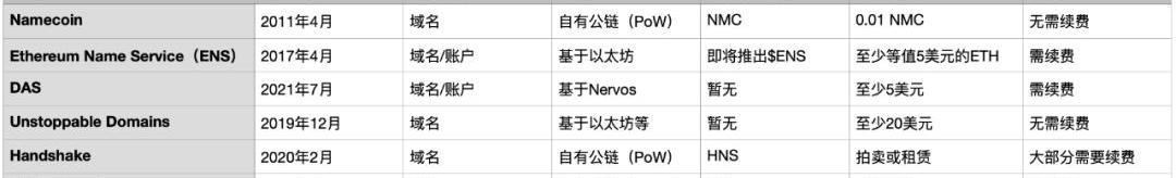 除此之外,各個協議還有是否選擇自建公鏈,具體的注冊價格等多種維度的區別。