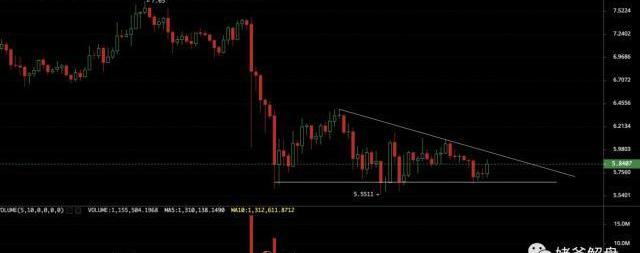 我看到不少主流在走這樣的圖形。EOS和ETH。一個4小時級別的下降三角形,這個是目前的形態,行情的轉折會在未來1天出來結果。