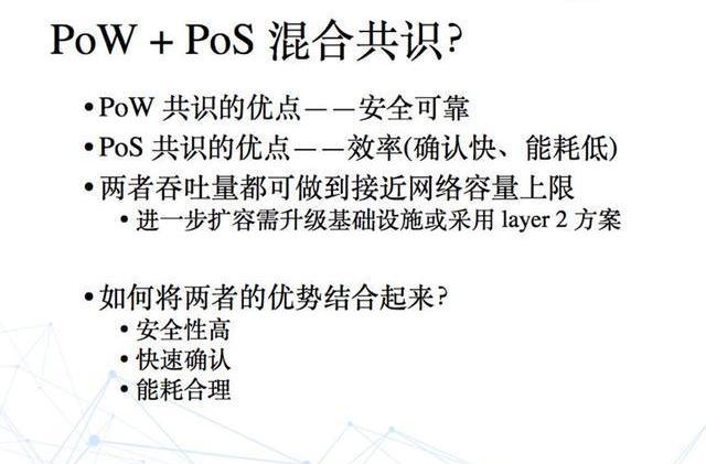 如果能把PoW和PoS的優勢結合起來,就有可能做到一個安全性又高,確認又快,吞吐量大,而且能耗還比較合理的系統。目前為止我還沒有看到特別好的解決方案,期待以后能出現這樣一個完美的解決方案。