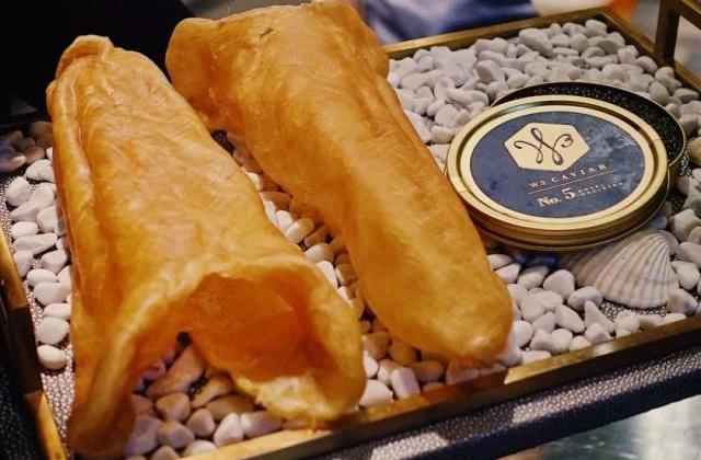一汪金燦燦的醬汁,則取姜蔥炒膏蟹之味,蟹黃蟹膏、蔥姜與雞蛋熬至香醇綿密,最后烹入22年陳年花雕,吃起來極似禿黃油,咸鮮豐潤,油而不膩,與香脆的海參本就登對,吃不完的醬汁,配上兩小截油條,當真不夠抹盤底!