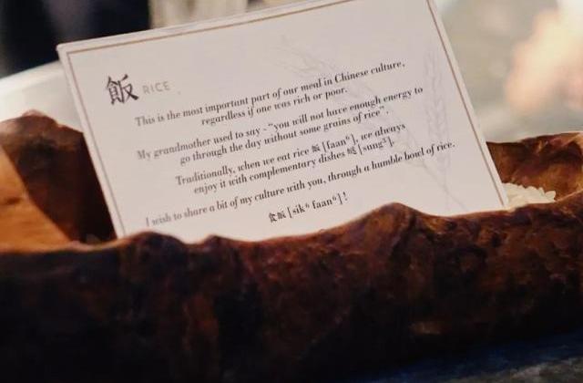 文化使命感再度出擊,解釋中國人為什么每頓都要吃米飯。其實還有一個中文版,因為繁體字某人一毛錢都不認識,就安排了英文版……很特別的牛肉叉燒,牛肉是事前熟成過的,口感豐腴華麗。配菜的韭蔥珍珠洋蔥,是法餐中的常見蔬菜,以四川花椒油提味增香,令人眼前一亮。
