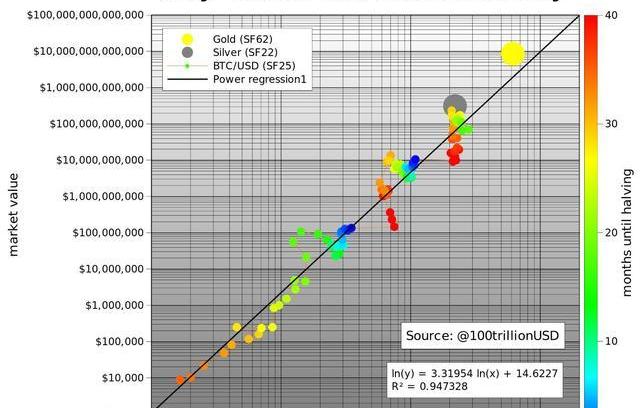 然而,根據量化分析師PlanB提出的宏觀經濟學模型指出,由于比特幣區塊獎勵減半特性,未來比特幣的存量/流通量比率將趨近于黃金、白銀等傳統避險資產。