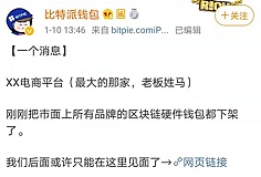 XRP/HKD-0.36%1月10日,據比特派錢包微博消息,XX電商平臺(最大的那家,老板姓馬)剛剛把市面上所有品牌的區塊鏈硬件錢包都下架了。包括 BITHD、Cobo 等品牌在內的產品均顯示“寶貝不存在”、無法購買。