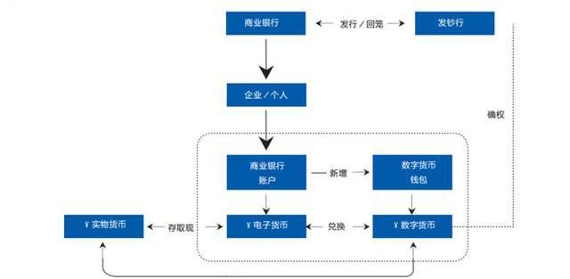 DC/EP的發現考慮采用現行二元體系實現投放與回籠,也稱作“雙層運營”,上層是央行對商業銀行,下層是商業銀行或其他運營機構對公眾,該體系不會改變流通中貨幣債權債務關系,商業機構需向央行繳納準備金,保證央行數字貨幣不超發。