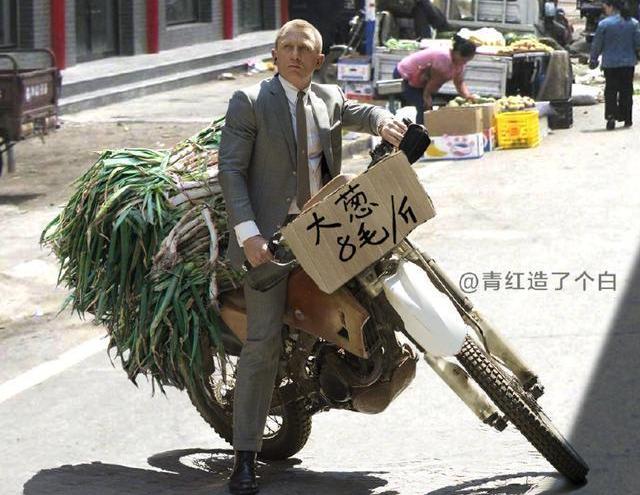 鼎鼎大名的特工,如果有一天也開始擺攤了,他會做什么呢?哦上帝啊,這個西裝革履的男人竟然騎著他那該死的摩托車在賣大蔥!嚴肅且無畏的表情,像是下定決心必定要將大蔥完整無缺地送到顧客的手中。