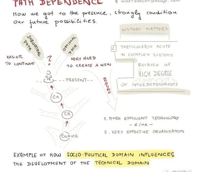 路徑依賴是指結果對導致它的事件順序的敏感性。廣義上說,這意味著歷史有慣性: