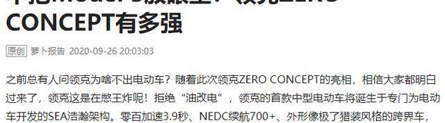 讓我來總結一下吉利領克這次宣傳的整體基調:歷時4年,潛心研發,耗資180億,雙殺特斯拉保時捷,跨時代意義,全球最先進純電架構,一鳴驚人!