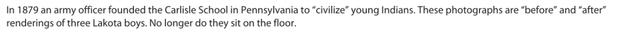1879年,一名美國軍官在賓夕法尼亞創辦了一所叫卡萊爾的學校用來教化印第安年輕人。這組圖對比了拉科塔族男孩在接受“教化”前后的差異,他們已不席地而坐。