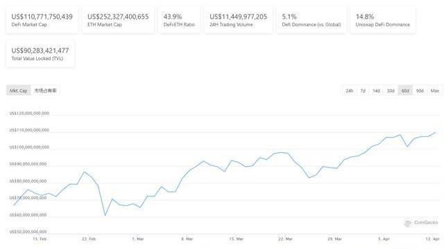 當前DeFi協議的總市值達到1107億美元,較上周同期上升2.5%。