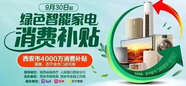 根據商務部進一步開展商務領域促消費重點工作的指示,為壯大綠色循環消費,積極擴大重點領域消費,促進消費增長,9月30日起,西安市商務局、西安市金融工作局聯合品牌家電賣場在西安市范圍內的經營門店,以及工商銀行、農業銀行、建設銀行、交通銀行、郵政儲蓄5家數字人民幣試點銀行陜西省分行,舉辦綠色智能家電消費補貼活動。