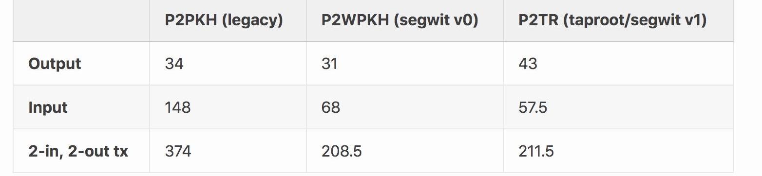 對于這筆花費,我們可以查看其中一個輸入,并看到它的witness只包含一個64字節的簽名。如果這是P2WPKH支出或任何其他類型的舊比特幣支出,那么所需要的witness會更大。