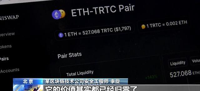 為了搞清TRTC幣無法賣出的真正原因,記者來到了一家專門做區塊鏈安全的技術公司。很快,技術人員監測到了TRTC的資金盤。沒想到的是,曾經的百倍幣,現在已經徹底成了空殼。
