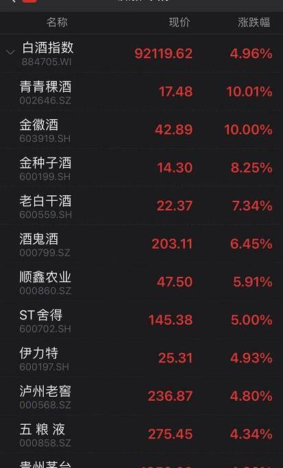 今日Wind白酒指數大漲4.96%,青青稞酒、金徽酒、ST舍得漲停。