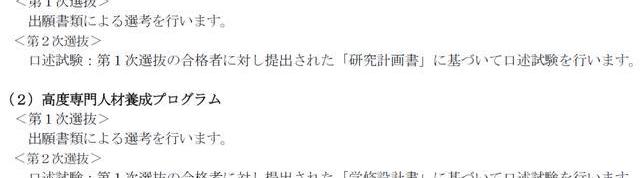 “高度專門人才養成項目”根據書類選考的結果有可能會免除面試