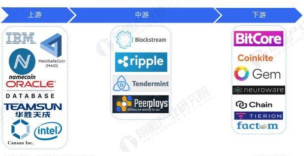 區塊鏈產業鏈的上游主要是底層的技術及基礎設施。底層技術包括核心基礎組件、協議和算法。以比特幣、萊特幣、以太坊為代表,搭建了基于區塊鏈技術的分布式算法、數字秘鑰、數據存儲、P2P網絡協議、共識機制等網絡環境、交易規則及礦工加入網絡節點的獎勵機制,代表性企業有小蟻、量子鏈、萬象區塊鏈等;基礎設施則主要是礦機。