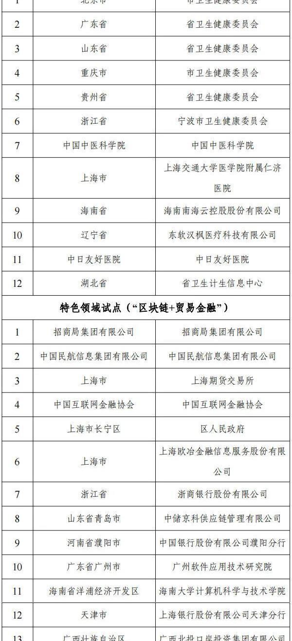 XRP/HKD-2.71%人民網北京1月30日電(申佳平)據中央網信辦消息,為深入開展區塊鏈創新應用工作,中央網信辦、中央宣傳部、最高人民法院等十六個部門近日聯合印發通知,公布了15個綜合性和164個特色領域國家區塊鏈創新應用試點名單。