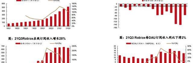 Roblox21Q3營業收入5.1億美元,同比增長102%;Roblox21Q3歸母凈虧損7400萬美元。