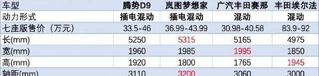 中大型MPV最考驗車企的造車硬實力,一般車企即使能像模像樣造一個大的MPV,但是在動力、舒適性、空間和安全性這些方面有任何不足都會造成較大的差距。今天,我們就以豐田賽那為對標,看一看騰勢D9與夢想家這兩款MPV在上述幾個方面水平如何。