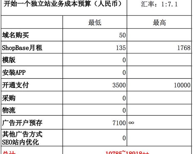 那么現在我們做一個表總結一下,做跨境獨立站究竟要多少成本呢?