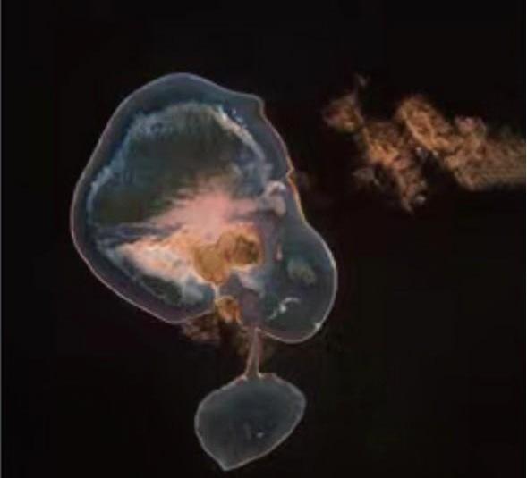 2021年8月1日,譚恩MOSSAI全球首發活動在線上發布。藝術家譚恩和譚恩MOSSAI合影之際,策展人劉晨旭還公布了譚恩和譚恩MOSSAI各自的作品。譚恩發布的作品是其2014年創作的布面油畫——200厘米見方的《尋》;譚恩MOSSAI公布的是2021年創作的數字NTF作品《原·元seed0462》。記者作屏上觀,仍能感覺到作為藝術家的譚恩先生,其布面油畫那種表現主義與追求深層“幻象”構成的意圖。而譚恩MOSSAI的作品NTF作品《原·元seed0462》,看上去,似乎與譚恩的作品有傳承關系,也有點兒表現主義的影子,但實際上這已經是一幅元宇宙作品了——在一個充滿未知的環境中,生命與非生命的界限變得模糊,分離與聯系又是時刻在演進。暗示著譚恩MOSSAI既是現實,又是虛擬;既是當下,又是未來。