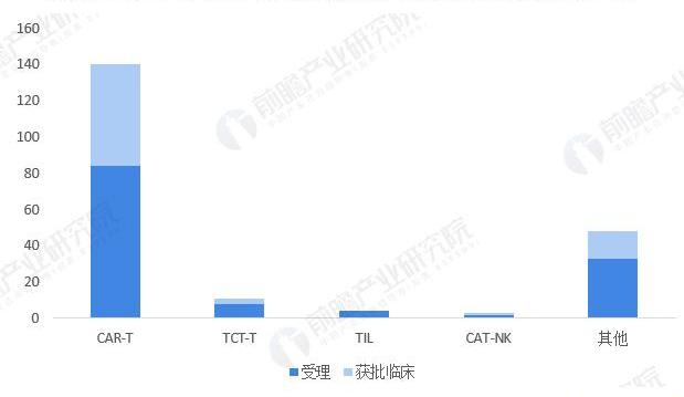 2021年國家藥品監督管理局藥品審評中心共受理細胞和基因治療產品59件,包括IND申請、補充申請及仿制藥補充申請;其中,免疫細胞領域的臨床試驗申請達28件,是臨床試驗申請最多的細分賽道。