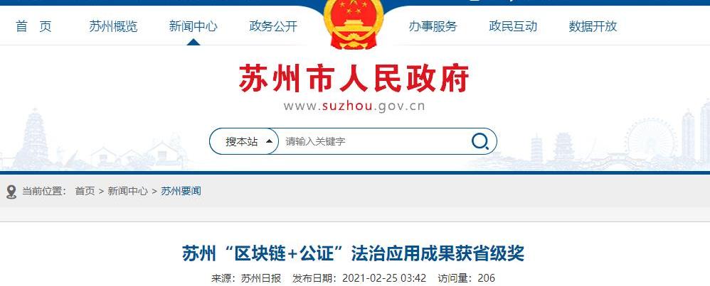 以此為支撐,蘇州市在全國率先推出行政執法全過程記錄、昆山賦強公證平臺、蘇城存證App、“關證一鏈通”保稅貨物公證輔助銷毀處置等區塊鏈公證服務應用產品,涵蓋了行政執法、復工復產、普惠金融等多領域,進一步優化法治化營商環境,為群眾帶來了更好的服務體驗。此項蘇州“區塊鏈+公證”法治應用榮獲2020數字江蘇建設優秀實踐成果獎。