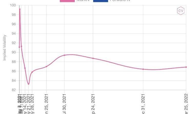 以太坊期權隱含波動率期限結構,截至5月3日18:00,數據來源:gvol.io