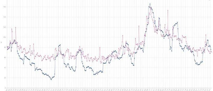 在相同的市場環境面前,以太坊在高階數據上的表現與比特幣完全相反。在幣價上漲后,在值期權的隱含波動率回落,但是仍然高于比特幣20%。與此同時,在偏度數據上,以太坊保持了非常明顯的上升趨勢,其看漲期權溢價在不斷增強。