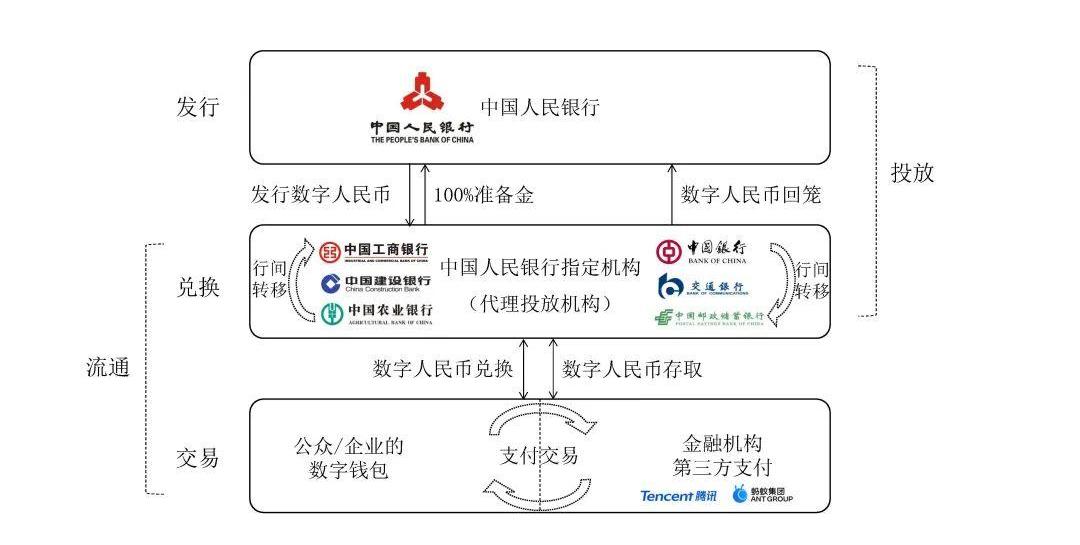 投放層的主體包括中國人民銀行和指定機構,主要解決“怎么發”的問題,以實現上文所述數字人民幣定義的前兩個層面——貨幣定位和發行管理。