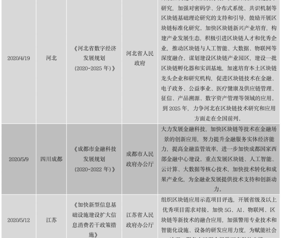 2020年區塊鏈產業政策整體情況