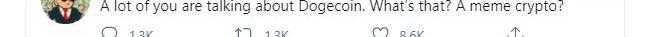 1月28日,WSB論壇里,一個叫WSB主席的人,發了一個動態,談論狗狗幣。