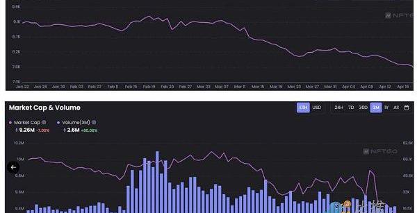 去年4月份以來,新用戶占比逐漸下跌。3月份,NFT領域的融資輪次數量從10次下降到8次,總輪次下降了38%;Gryfyn于本月完成了750萬美元融資,為NFT市場上數額最大,這與去年NFT藍籌動不動上億元融資相差甚遠。3月18日,NFT的市值達到3月最高的204億,但仍低于2月份的高點;NFT交易量在2月的強勁表現后明顯下降;3月NFT市場交易量為15億美元;周NFT用戶數量相比2月份下降了25-35%。整體上看,NFT市場新用戶少,新增資金有限,市場整體仍然處于萎縮狀態,這也就意味著NFT市場目前仍然處在熊市中,遠沒有走出來。