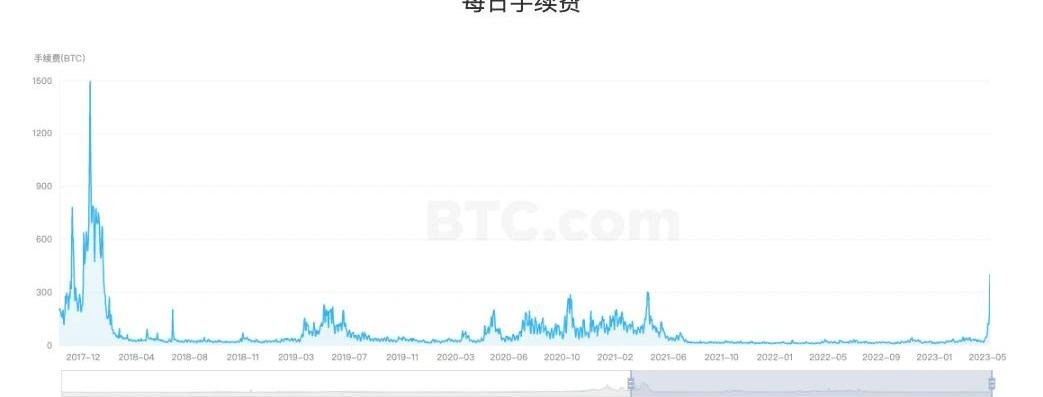XRP/HKD-1.34%隨著近兩周BRC-20走熱,比特幣交易費用飆升。