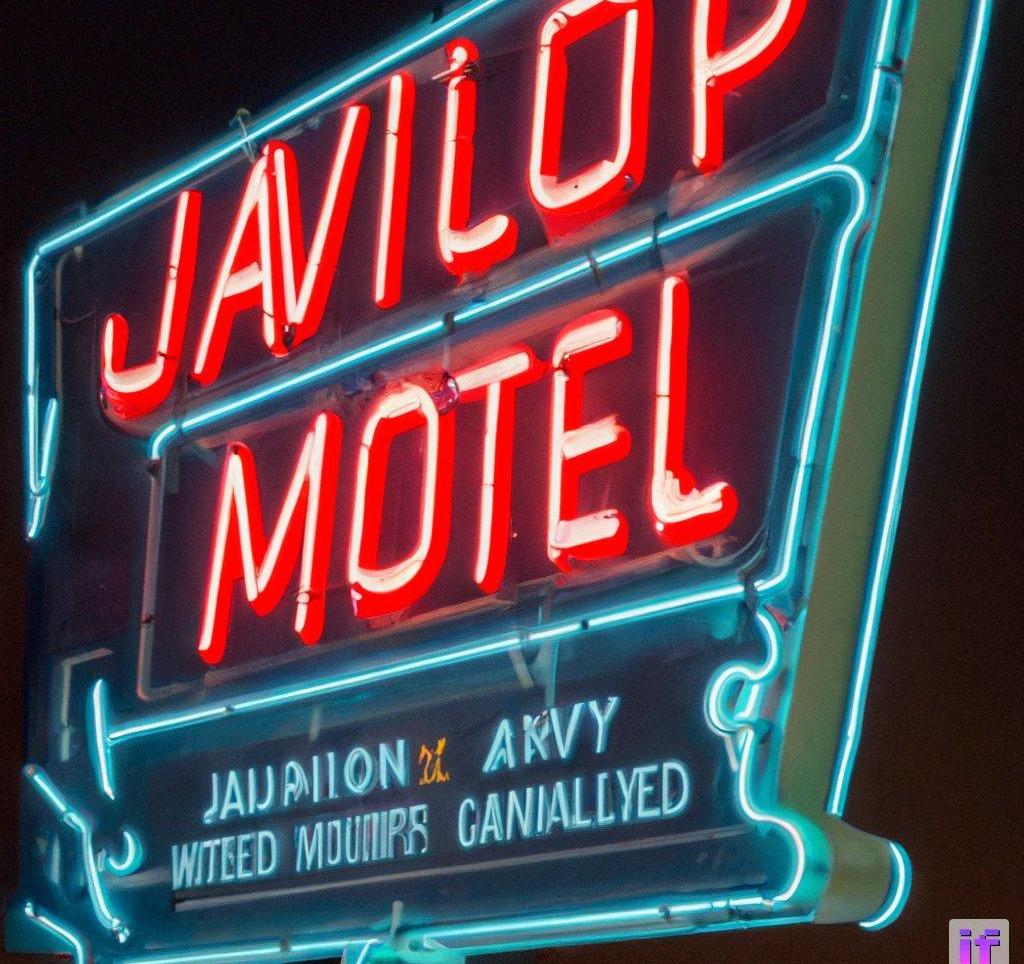 prompt:AneonsignofanAmericanmotelatnightwiththesignjavilop