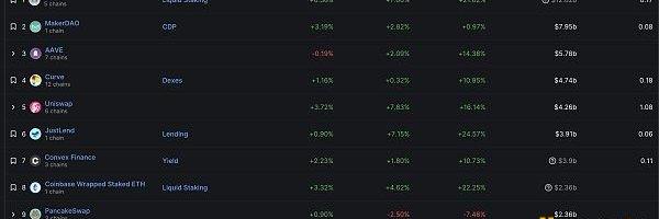 DeFi項目鎖定資產前十排名及鎖倉量數據來源:defillama