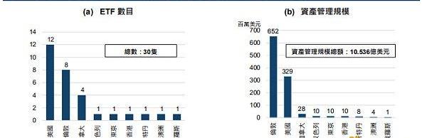 于2022年11月底,加拿大、巴西、美國及澳洲多個市場共有40只虛擬資產ETF,涉及資產管理規模總額達24億美元;