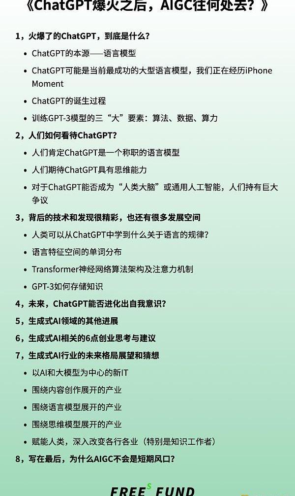 在這篇報告,我們會先梳理ChatGPT發展的歷史沿革:它從哪里來,到底是什么技術在驅動它向前。我們的思考也會圍繞人們對它的討論而展開:它能火多久,有機會成為“人類大腦”或通用人工智能嗎?同樣重要地,我們會把落點放在創投行業,來探討與AIGC相關的創業及投資機會。