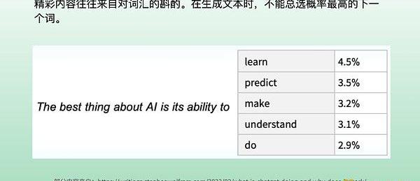 ChatGPT在生成文本時,是每次選擇一個詞,這個詞是在語言模型給出的概率表中做出的選擇。當前科研人員的發現是,如果每次都選擇概率最高的詞匯,理論上是最優解,最后呈現卻往往是一篇非常普通的文章;如果不是每次選擇最優解,例如隨機選擇排名稍微靠后一點的,卻有更大機會生成一篇精彩文章。這也是個有意思的未解之謎。