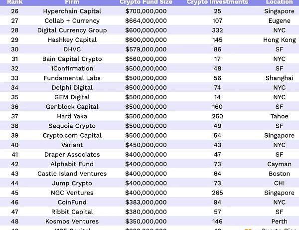 按基金規模排名的頂級加密貨幣風險投資公司;