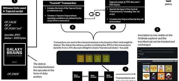 盡管在SegWit和Taproot之前使用OP_RETURN操作碼將數據銘刻到比特幣交易中是可能的,但OP_RETURN重量限制為80字節。因此,使用Taproot時,輸入任意數據的另一種新類型的腳本變得更加實用,該腳本允許通過75%的重量單位縮減存儲無限量的數據。