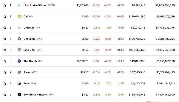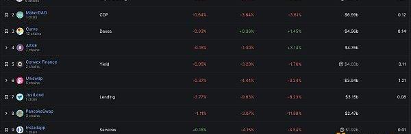 DeFi項目鎖定資產前十排名及鎖倉量數據來源:defillama