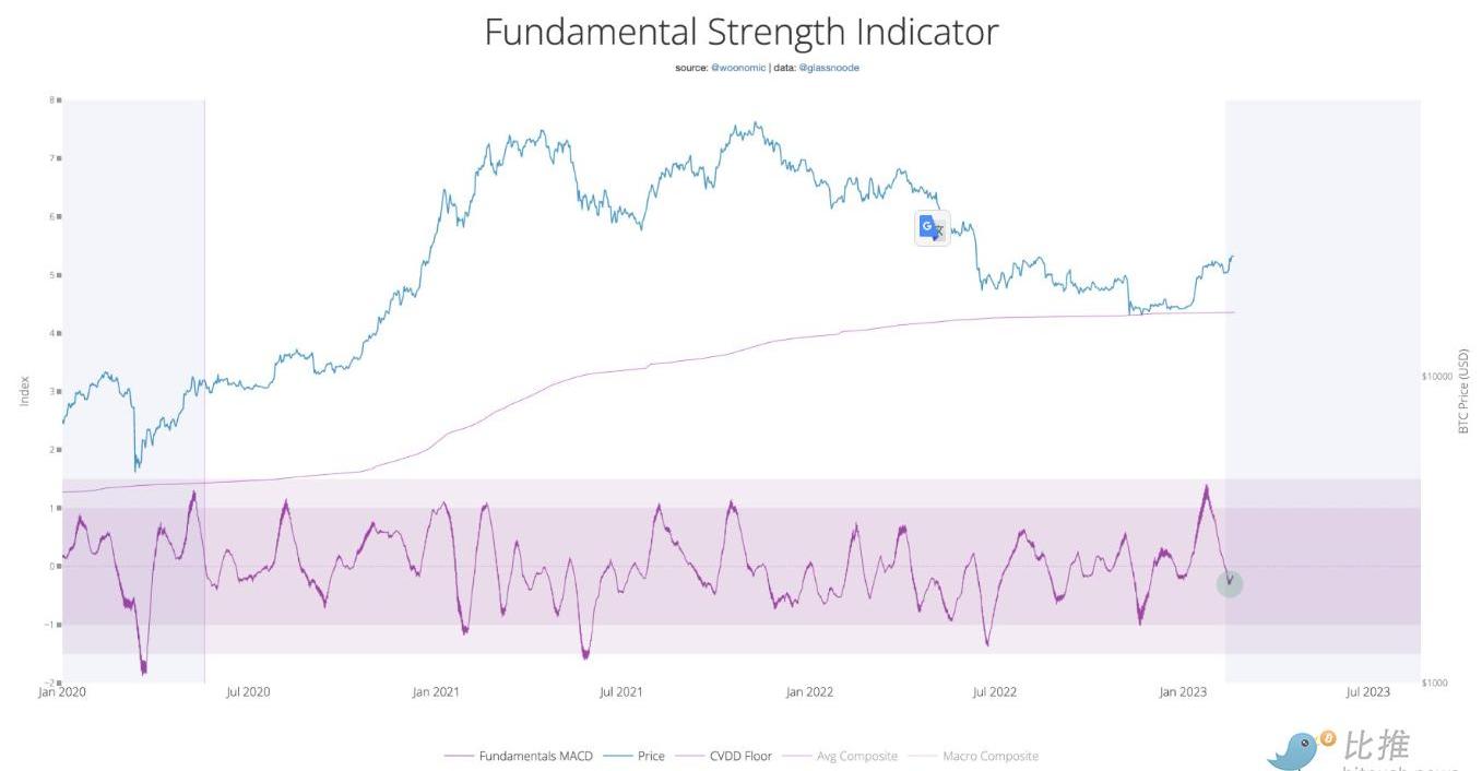 WillyWoo2月21日發推表示,Bitcoin的基本面正在回升。FundamentalStrengthIndicator不再過熱并開始上升,如果價格遠高于25k,我們可能會出現軋空。